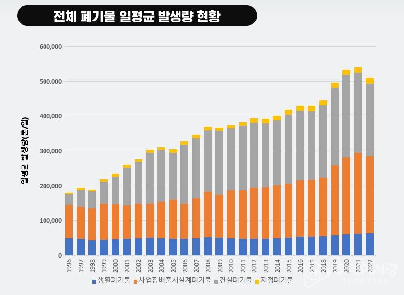 현재 전국에서 하루에 발생하는 쓰레기만