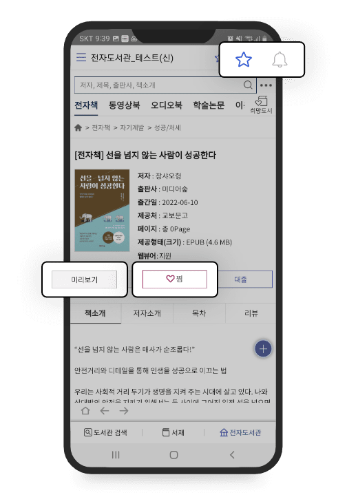 전국 공공도서관과 대학도서관 전자자료를 연계해 제공하는 전자도서관 앱이에요.