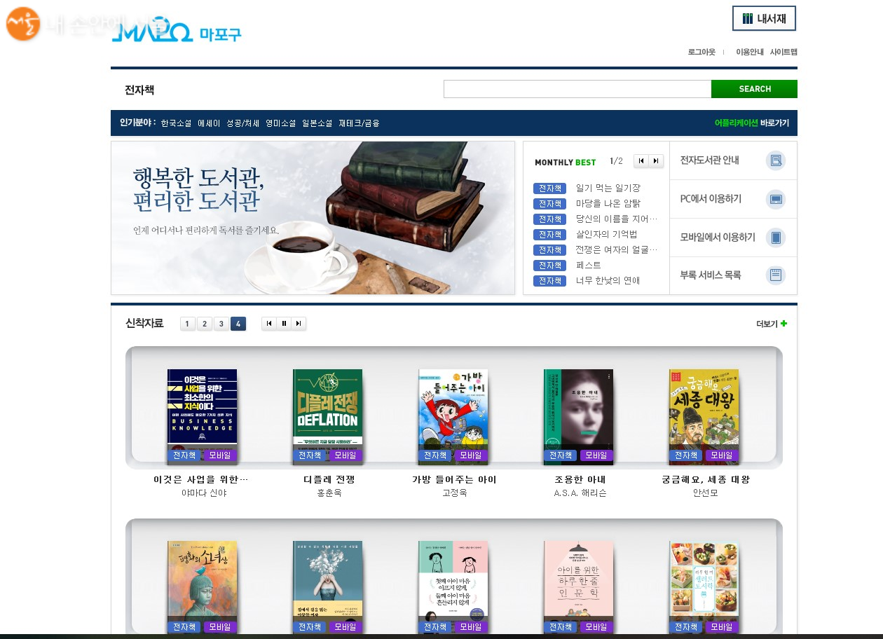 - 전자책 서비스 메뉴 선택