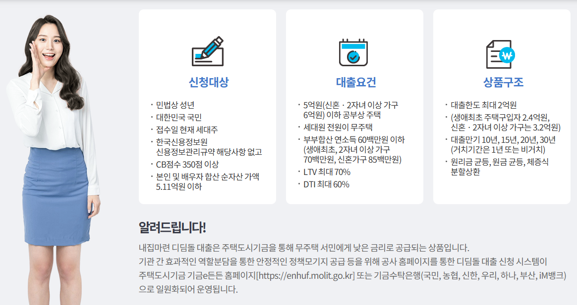 운영 주체는 주택도시기금(디딤돌대출)이고, 시중은행 주담대 대비 낮은 금리가 장점으로 자주 언급돼요.
