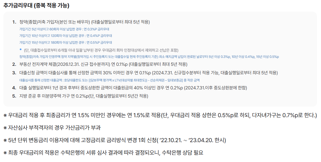 청약저축 가입기간이 길거나, 자녀 관련 항목이 해당된다면 금리 측면에서 체감이 생길 수 있어요.
