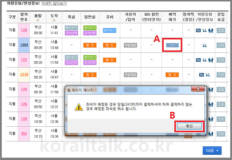 KTX 매진 화면에서 입석+좌석 예약대기 버튼이 보인다면 꼭 활용해보세요.