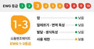 - 소듐벤조에이트: 다른 성분과 만나 발암물질을 생성할 수 있으며, 0.5% 이하로 사용이 규제됩니다.